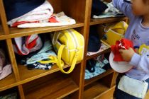 昨日の帰りの集まりで、自分のロッカーの整理の仕方を紹介しました。カバンの紐はまとめてポケットに入れておくとお友達が引っかけないよ、赤白帽子や荷物袋は、半分に折ると小さくたためるよなど。きれいに整理されたロッカーは使う人も気持ちがいいです。年長さんのロッカーは年下のお友だちのお手本になります。
